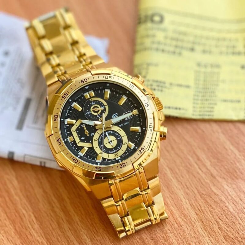 # Features- Working All Chronographs❣️ & Date, Full Golden Metal Chain, Black Dail With Gold Figures & Smart dial With Elegant Looks Quartz Machinery