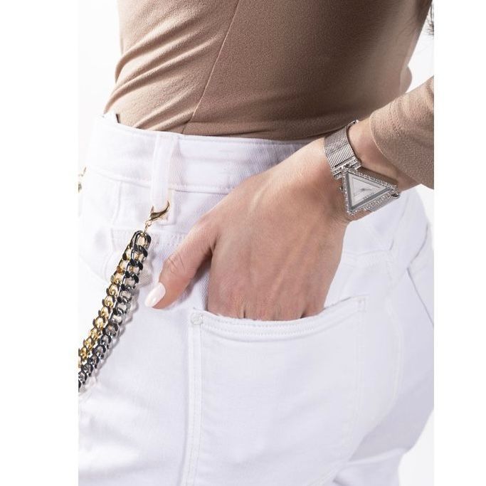 Guess Women Fame Silver Tone Triangle Dial Analog Watch – GW0508L1